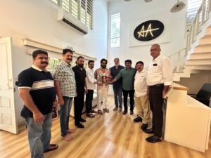 నందమూరి బాలకృష్ణ గారు సినీ రంగ ప్రవేశం చేసి 50 వసంతాలు పూర్తి చేసుకుంటున్న సందర్భంగా సెప్టెంబర్ 1న హైదరాబాద్ హైటెక్స్ నోవోటెల్ హోటల్లో తెలుగు సినీ పరిశ్రమ ఆధ్వర్యంలో గ్రాండ్ గా సెలబ్రేషన్స్ ని ప్లాన్ చేశారు. నేషనల్ అవార్డు గ్రహీత ఐకాన్ స్టార్ట్ అల్లు అర్జున్ గారిని కలిసి తెలుగు సినీ ఇండస్ట్రీ తరఫున ఆహ్వానించిన ఫిలిం ఛాంబర్ ఆఫ్ కామర్స్ ప్రెసిడెంట్ భరత్ భూషణ్ గారు, ఫిలిం ఛాంబర్ ఆఫ్ కామర్స్ సెక్రటరీ దామోదర్ ప్రసాద్ గారు, నిర్మాతల మండలి సెక్రటరీ ప్రసన్న కుమార్ గారు, తెలంగాణ స్టేట్ చాంబర్ ఆఫ్ కామర్స్ సెక్రెటరీ అనుపమ రెడ్డి గారు, మా అసోసియేషన్ నుండి మాదాల రవి గారు, శివ బాలాజీ గారు, నిర్మాత ముత్యాల రామదాసు గారు.