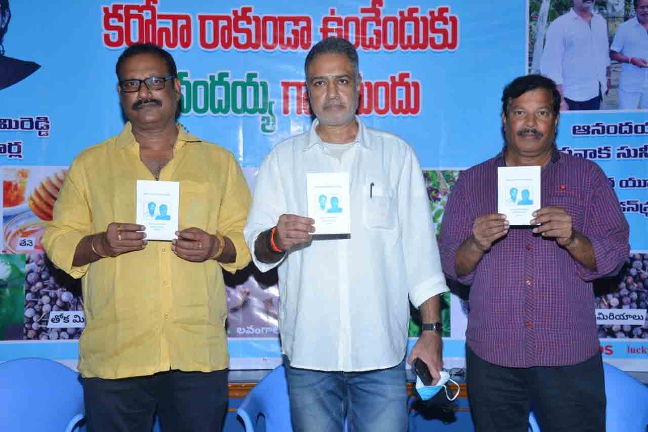 తెలుగు ఫిల్మ్ ఛాంబర్ ఆఫ్ కామర్స్ గౌరవ కార్యదర్శి దాము మాట్లాడుతూ.. నాకు రెండు రోజుల క్రితం సునీల్ రెడ్డి ఫోన్ చేసి నేను సినిమా ఇండస్ట్రీ ఆరోగ్యంగా ఉండాలనే తలంపుతో ఆనందయ్య దగ్గర నుండి ఈ మందు తీసుకు వచ్చి అందరికీ ఆనందయ్య మందు పంపిణీ కార్యక్రమం చేయాలను కుంటున్నానని అని నాకు తెలియజేయడం జరిగింది. సునీల్ గారు చెప్పిన తరువాత ఈ మందు మంచిదే అని తెలుసుకొని ఈ మందు వాడినా ఎటువంటి సైడ్ ఎఫెక్ట్స్ రావని తెలుకోవడమే కాకుండా క్రాస్ చెక్ చేసుకొన్న తరువాత తగిన తగిన జాగ్రత్తలు తీసుకుంటూ ఈ మందులు వాడాలని సూచించడం జరిగింది. ఇది ఎలా వాడాలో మీకు సునీల్ రెడ్డి గారు తెలియజేయడం జరుగుతుంది.ఈ కవర్ లో దానికి సంబంధించిన ఒక పాంప్లెట్ ఉంది. ఆ పాంప్లెట్ ని ఫాలో అయి మీరందరూ వాడతారని ఆశిస్తున్నాను. దీనికి సంబంధించిన ఫిలిం ఛాంబర్ 4 సెక్టార్స్ ప్రొడ్యూసర్స్ & మెంబెర్స్ , స్టాఫ్ కు మరియు మీడియా మిత్రులందరికీ అందజేస్తున్నాము. ఈ మందు కోసం అందరూ తమ ఐడీ కార్డు చూపించి తీసుకోవాల్సిందిగా కోరుచున్నాము .దీనికి సంబంధించి ఇంకేమి కావాలన్నా సురేందర్ రెడ్డి గారిని కలిస్తే ఆయన పూర్తి వివరాలు మీకు అందజేస్తాడు. అలాగే మొదట అందరికీ ఇచ్చిన తర్వాత ఇంకా సరిపోకపోతే సునీల్ రెడ్డిని అడిగి ఈ మందు తెప్పిస్తాము అని అన్నారు.
