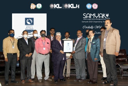 April 2, 2021 – KL University has secured the ‘India World Record’ for conducting the event – SAMYAK-2021, which is India’s largest techno-management fest by participation numbers with more than 100000 students participated, and for taking all the precautionary measures to conduct the event safely and successfully during the pandemic. The event was also the first of its kind to completely avoid the use of disposable plastics, thereby reducing the carbon footprint. The ‘India World Record’ was received by Dr. L.S.S.Reddy, Vice Chancellor of KL Deemed to be University and was awarded by Dr. G.V.N.R.S.S.S. Vara Prasad, Honorary Director & Adjudicator, Indian Book of Records and Advocate, Supreme Court of India. SAMYAK 2021 is the most successful event in the pandemic time as more than 10000 students participated each day, across 217 events during 19th and 20th March, 2021. BlockChain technology based certificates were awarded to all the participants by DLT Labs for the first time in India.