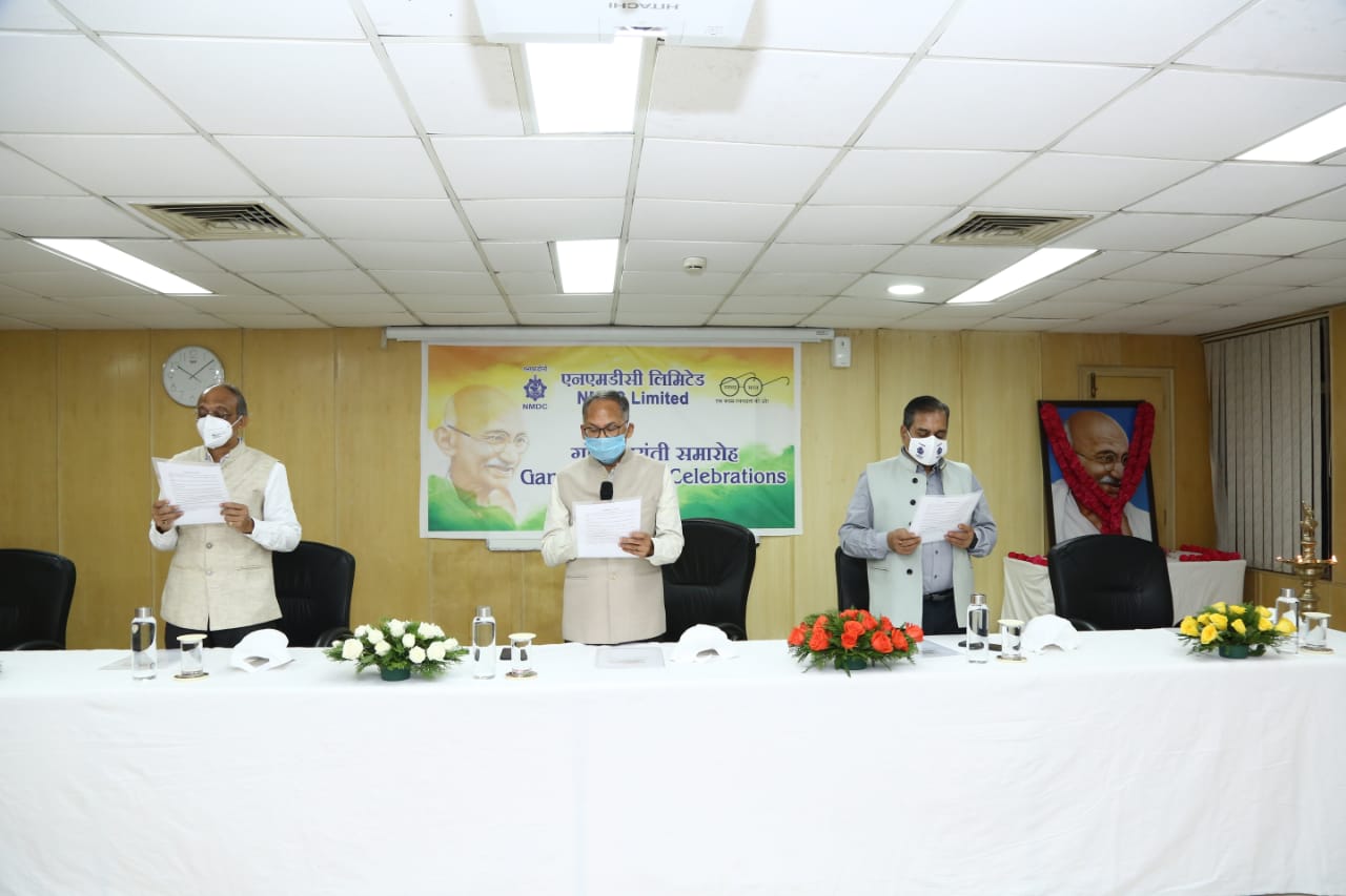 Hyderabad, 2nd October, 2020: NMDC, the country’s largest Iron ore producing Navratna mining company, commemorated Mahatma Gandhiji’s 151st birth anniversary by pledging for a ‘Swachh Bharat’ Abhiyaan’ today at the company’s headquarters in Hyderabad and all its project sites across the country. This is the 6th year running that NMDC pledged to spread the message of ‘Cleaner India – Greener India’ being the motto of the Swachh Bharat Abhiyan.
