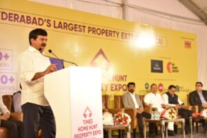 మంత్రి పొంగులేటి శ్రీనివాస్ రెడ్డి మాట్లాడుతూ టైమ్స్ అఫ్ ఇండియా గ్రూప్స్ ఆధ్వర్యంలో ప్రాపర్టీ ఎక్స్ పో ను ప్రారంభించడం చాలా సంతోషంగా ఉంది అని ప్రభుత్వం అధికారంలోకి వచ్చి 6 నెలలు పూర్తి మూడు నెలలు ఎన్నికల కోడ్ ఉండే ఎన్నికల కోడ్ కారణంగా ఆశించిన స్థాయిలో అభివృద్ధి చేయలేదు ఇప్పుడు పూర్తి స్థాయిలో అభివృద్ధి పై ఫోకస్ పెడ్తామ్. హైదరాబాద్ లో రియల్ ఎస్టేట్ రంగానికి అనువైన స్థలం